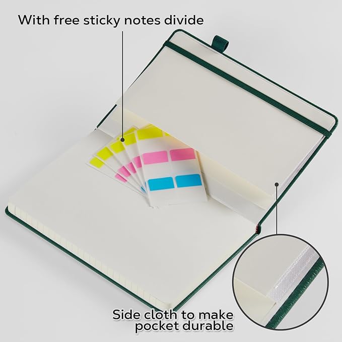 - Leather Journal Notebook - The premium leather cover gives the notebook a more comfortable touch, the elastic band can keep the notebook closed and protect the paper inside, and the 180° lay-flat design makes writing easier for both right- and left-handed users.